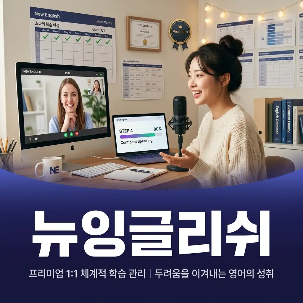 뉴잉글리쉬(New English)는 1:1 원어민 화상 수업과 전담 플래너의 밀착 관리 시스템을 결합하여 실전 회화 능력을 극대화하는 전문 영어 교육 브랜드입니다. 단순히 지식을 전달하는 것을 넘어 학습자가 실전에서 당당하게 소통할 수 있도록 돕는 체계적인 환경을 제공합니다.