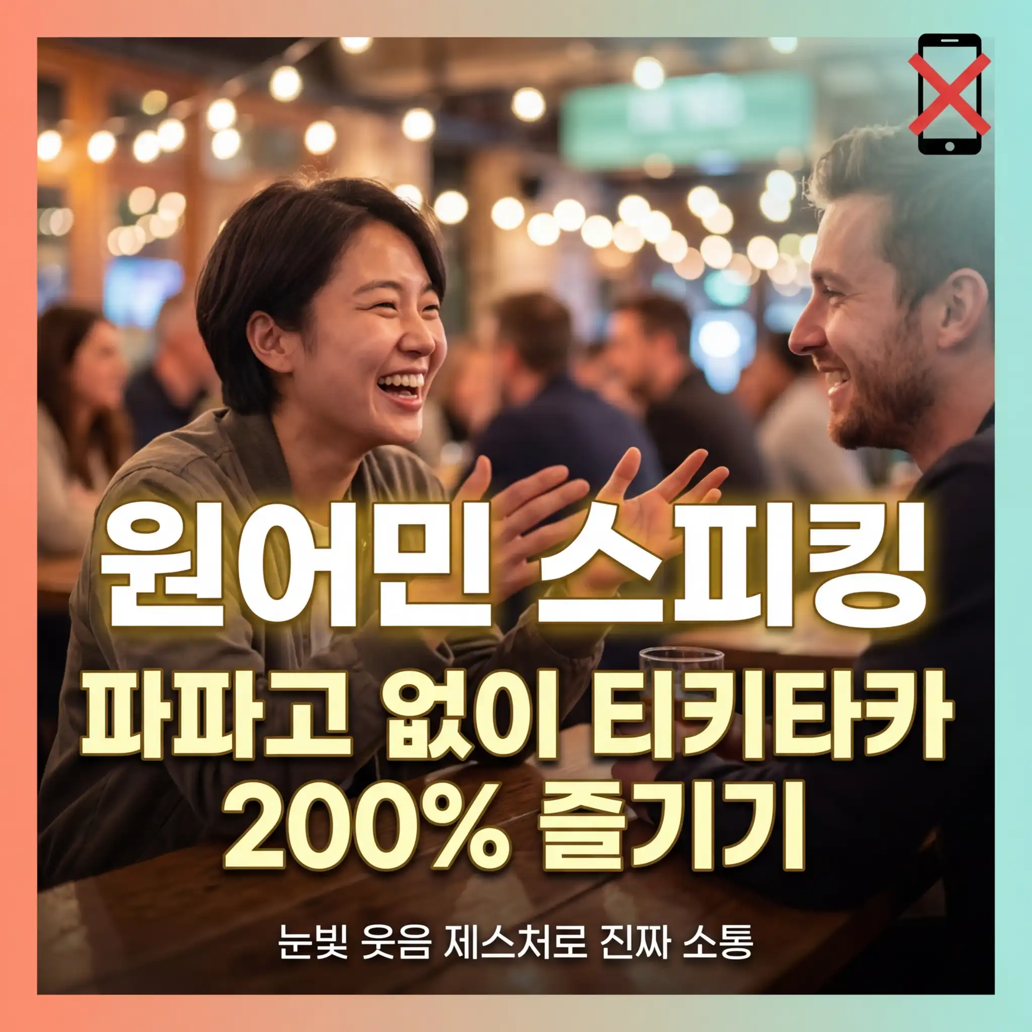 게스트하우스 파티나 펍에서 외국인 친구를 만났을 때, 스마트폰 번역기 앱부터 켜고 계시지는 않나요? 파파고가 번역을 마칠 때까지 기다리는 그 몇 초의 정적은 대화의 흐름과 흥을 완전히 끊어놓습니다. 완벽한 문장이 아니어도 괜찮습니다. 스마트폰을 주머니에 넣고, 눈빛과 웃음으로 진짜 '티키타카'를 만들어내는 실전 소통의 비밀을 알려드립니다.